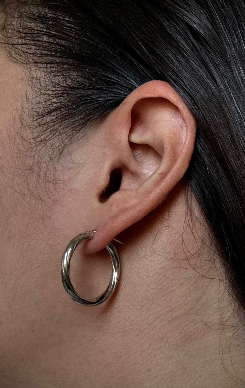 Les créoles en argent rhodié de cette paire captivent par leur finition torsadé, créant une texture qui capte la lumière à chaque mouvement. Avec leur diamètre de 20 mm et leur largeur de 3 mm, elles se posent délicatement sur vos oreilles, apportant une touche subtile de sophistication à vos tenues quotidiennes. Une allure minimaliste mais élégante, parfaite pour celle qui recherche un bijou chic sans effort, alliant lumière et originalité.