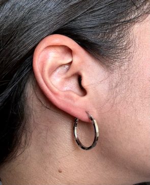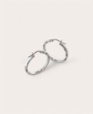 Créoles Argent Rhodié, Diamètre 20 striées 2mm Ronde tube carré