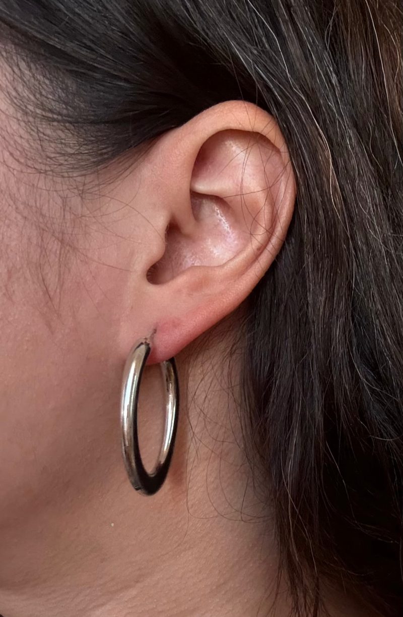 Boucles d’oreilles en argent, diamètre 4, ovale tube dégradé. Parfaites pour celles qui veulent un look à la fois structuré et fluide, elles apportent une touche artistique à votre style. Un bijou qui ose la singularité tout en etant classique.