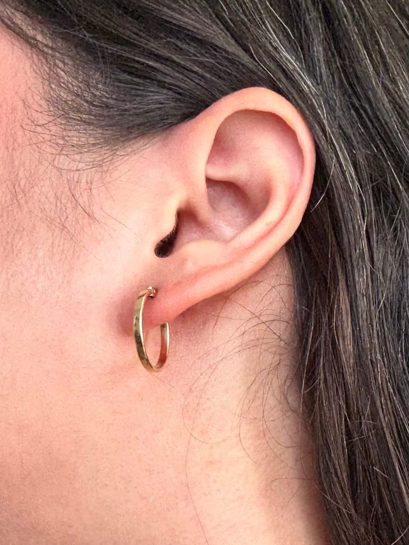 Boucles d’oreilles en or 375 jaune, diamètre 15 ronde fil rectangle 2 mm. Un bijou qui joue avec les formes, mariant la douceur de la rondeur et la modernité des angles droits. Légères et élégantes, elles apportent une touche d’originalité discrète mais percutante à votre style. Parfaites pour celles qui aiment l’audace sans compromis !