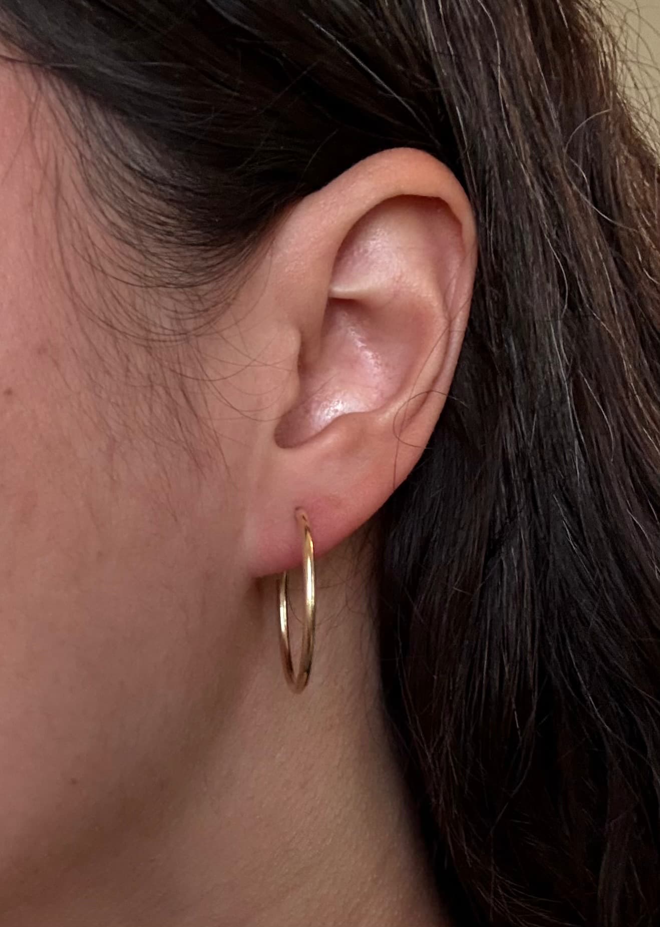 Boucles d’oreilles en or 375 jaune, diamètre 25 flexible ronde fil 1,6 mm. Une pièce qui aime la légèreté, avec une fluidité qui épouse votre oreille en toute décontraction. Parfaites pour un style à la fois cool et raffiné, elles apportent une touche de modernité à votre look. Un bijou qui ose la simplicité avec panache !