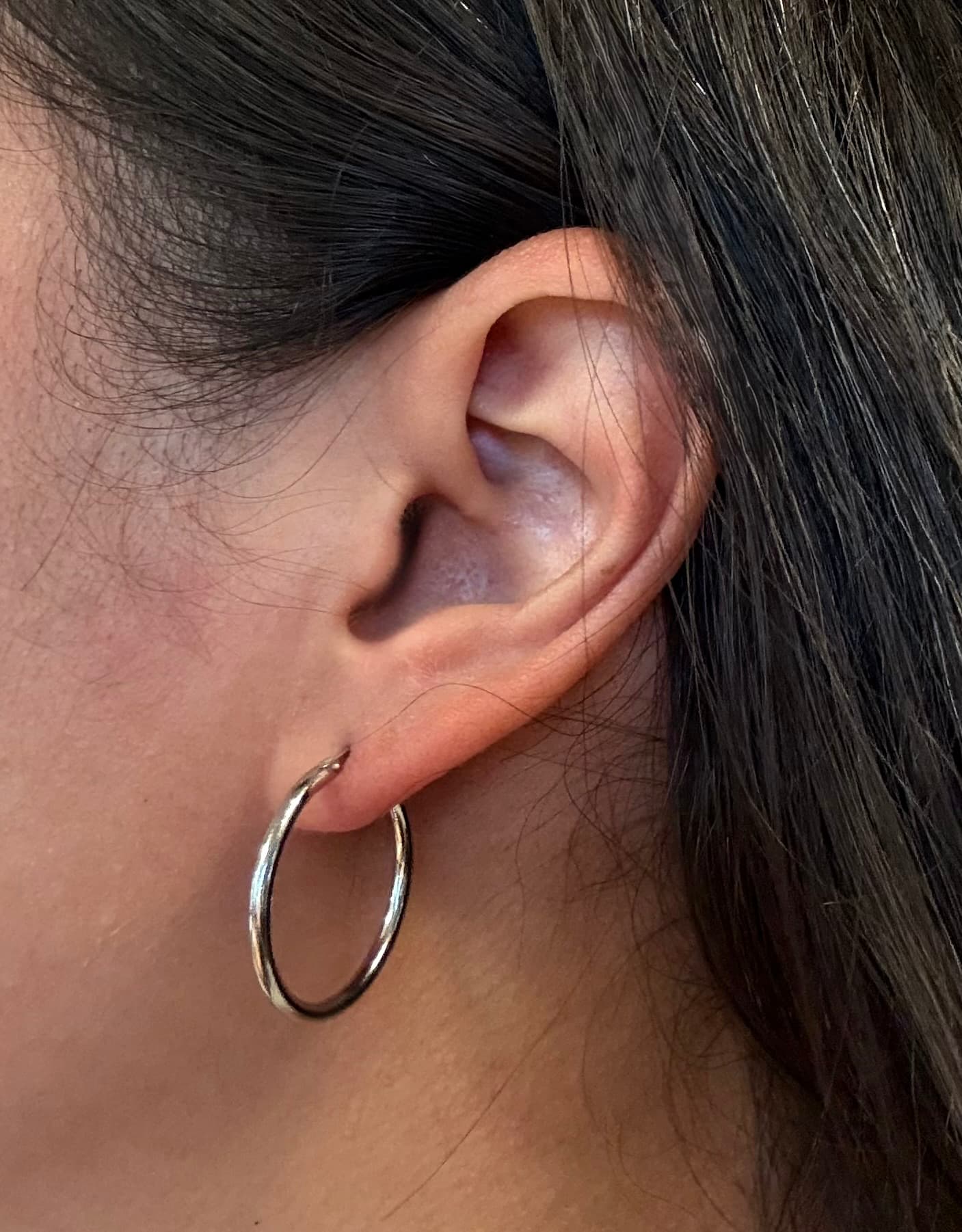 Boucles d’oreilles en argent, diamètre 20, ronde lisse 2 mm. Légeres, polyvalentes et intemporelles, elles s’adaptent à tous les styles pour un look élégant et raffiné.