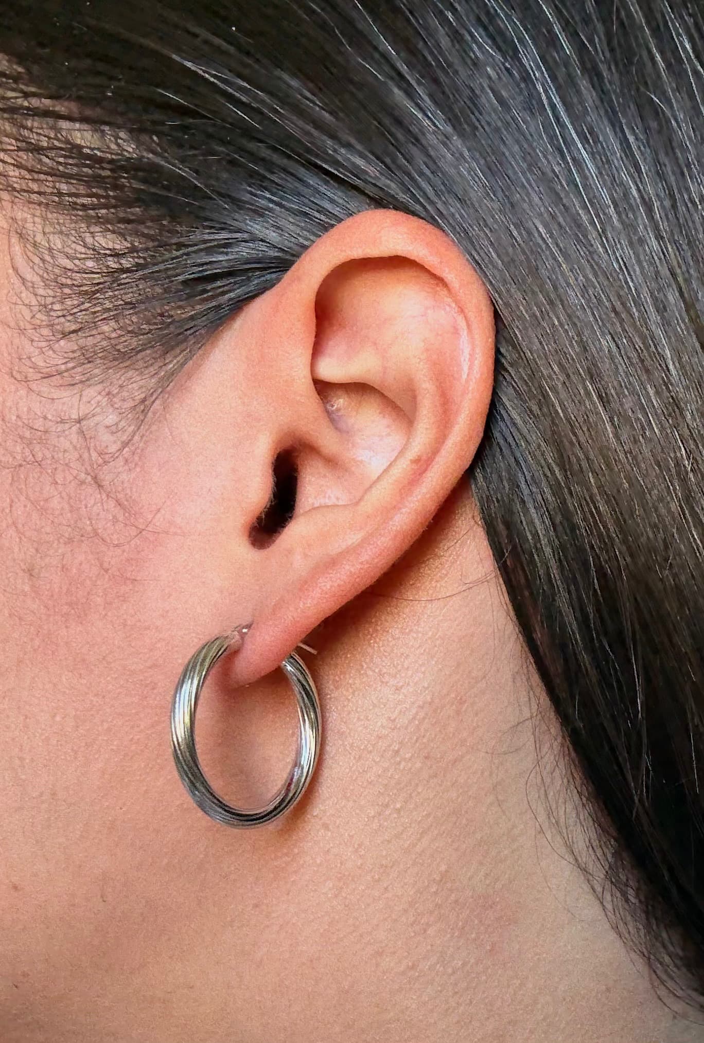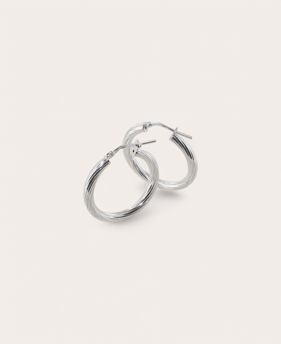 Créoles Argent rhodié, Diamètre 20 torsadées fines 3mm