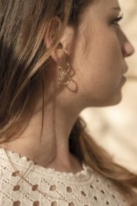 Boucles d’oreilles en or 750 jaune, forme huit 16×25 mm, lisse 2 mm. Design original et élégant, parfait pour un style unique et raffiné.