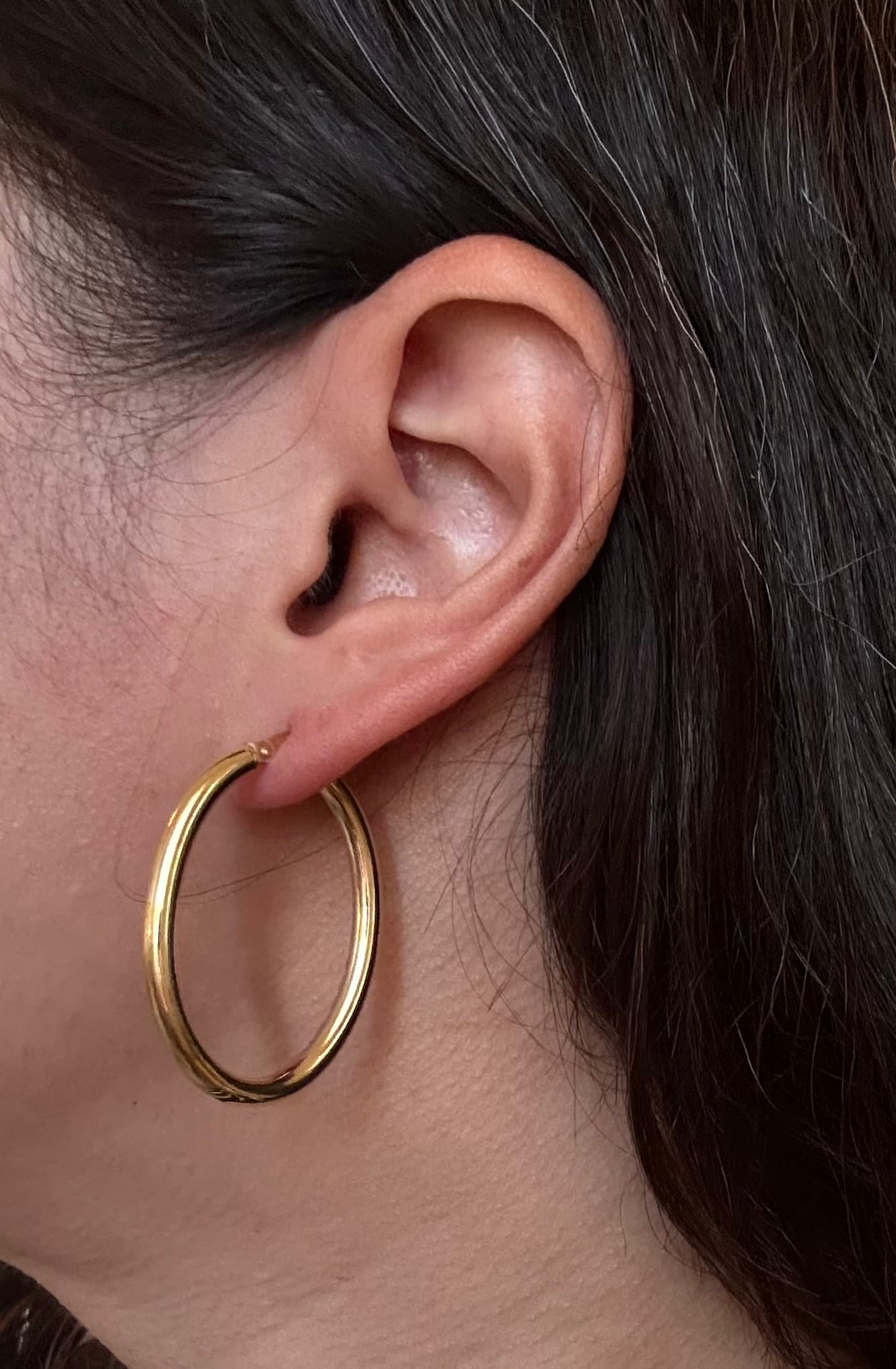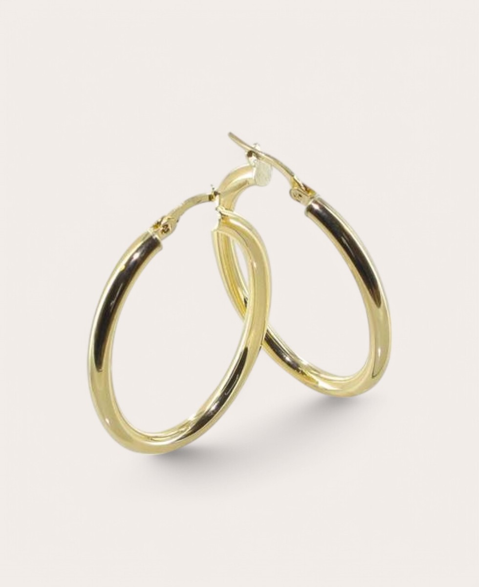 Boucles d’oreilles en or 375 jaune, forme ovale 20×30, lisse 3 mm. Une épaisseur moyenne pour un équilibre parfait entre légèreté et présence, idéal pour un style à la fois raffiné et polyvalent.