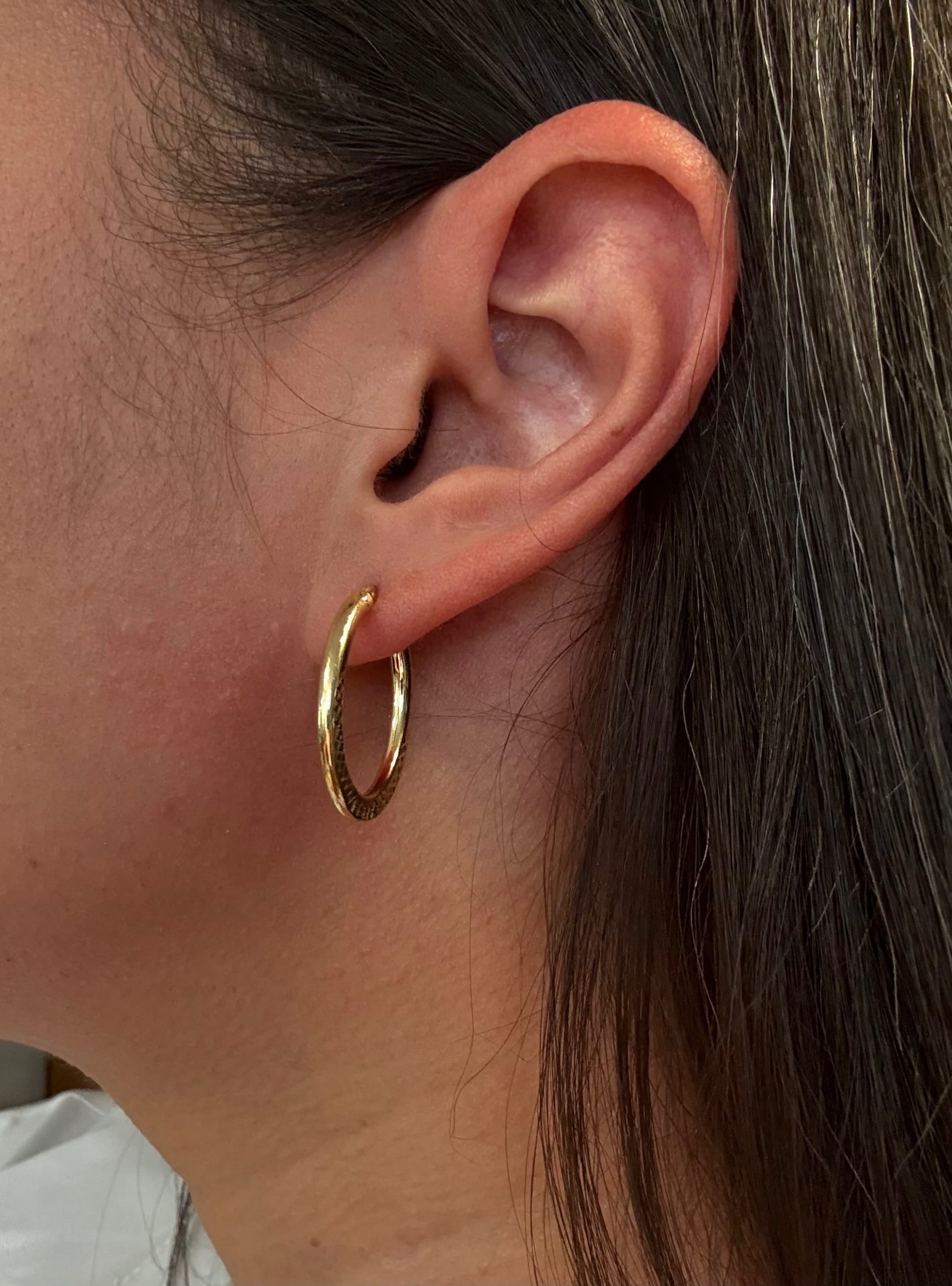 « Ces créoles ovales en or 375 incarnent la fusion parfaite de la délicatesse et de l’élégance moderne. Avec une largeur de 2 mm et un diamètre de 22×15 mm, elles apportent un éclat discret mais raffiné à votre style. Un jolie motif subtilement gravé sur le bas de chaque créole, ajoute une touche de texture unique, attirant la lumière avec finesse. Un bijou délicat et sophistiqué, parfait pour ajouter de la personnalité à vos tenues tout en restant élégant et intemporel. »