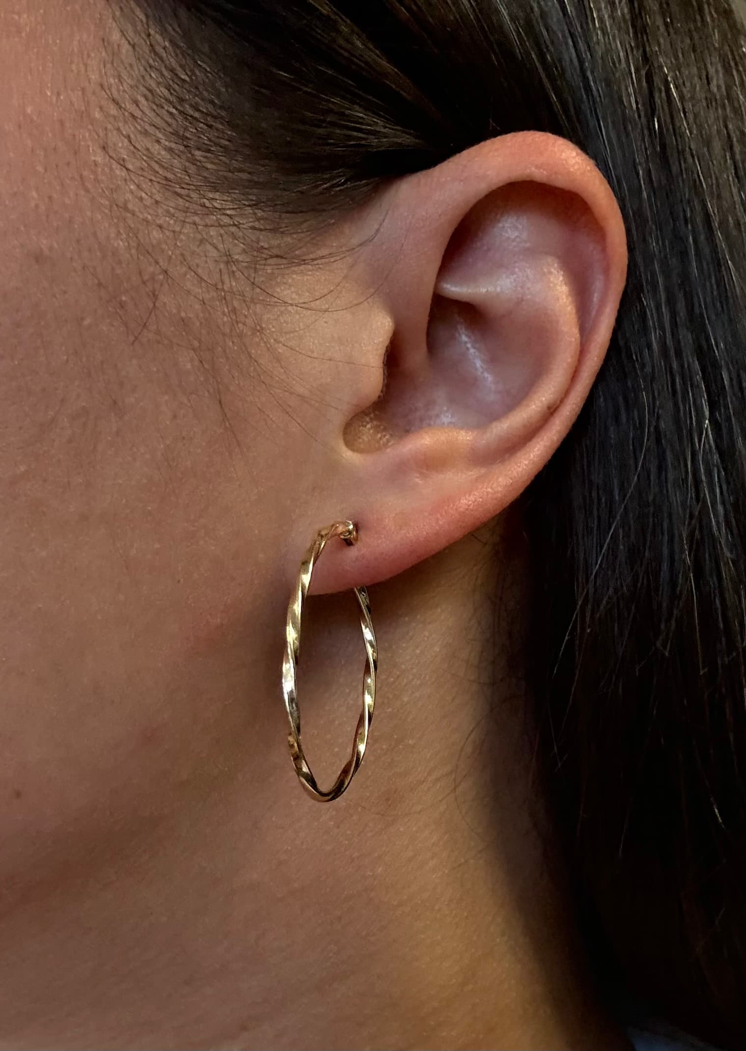 LINE Créoles Or 375, Diamètre 20×30 torsadées larges 2mm Ovales