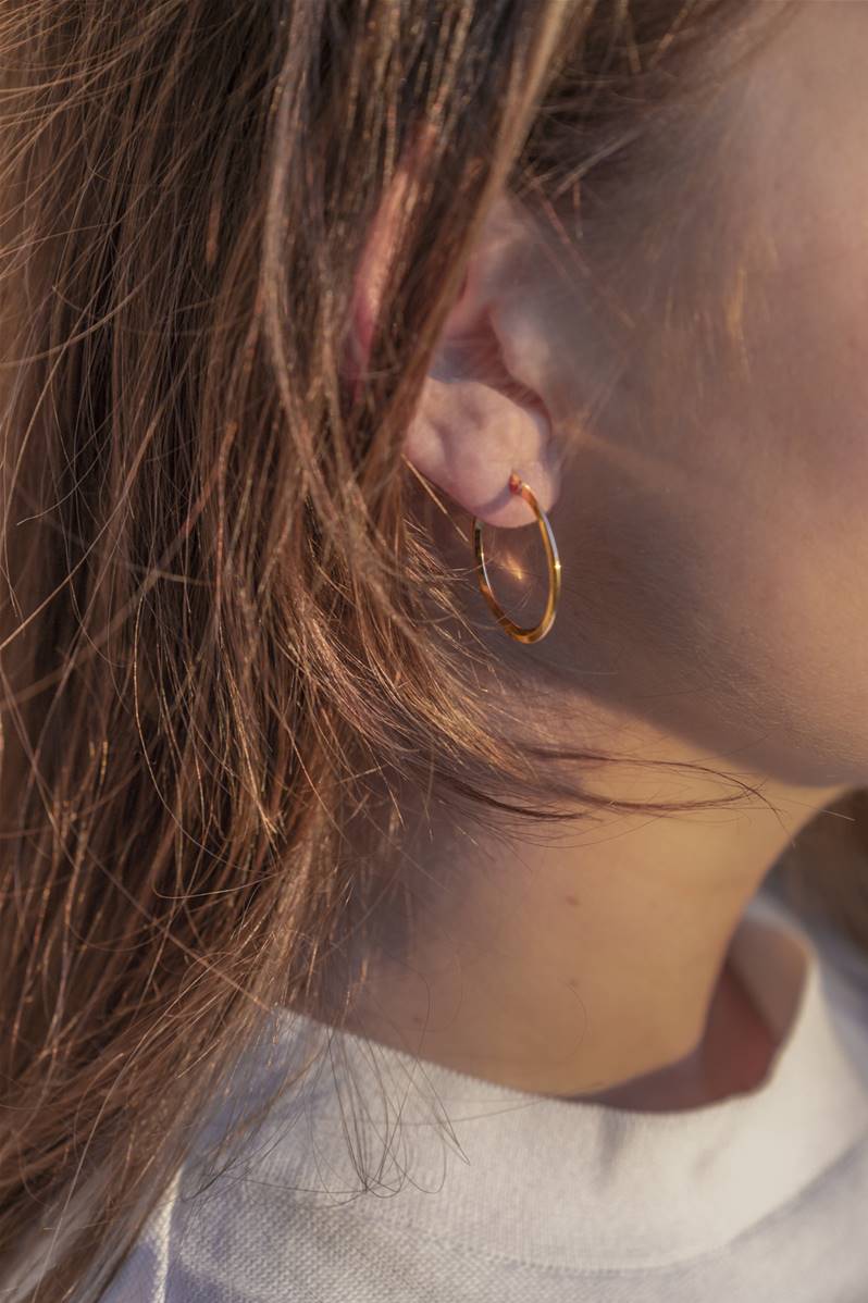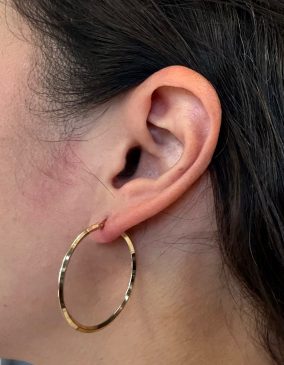 Boucles d’oreilles en or 750 jaune, diamètre 20, ronde fil triangle 2,7 mm. Un bijou qui ose la géométrie avec ses angles dynamiques et sa rondeur apaisante. Une pièce qui capte la lumière et les regards, parfaite pour un style qui marie audace et sophistication. Pour celles qui veulent briller avec un look unique et percutant !