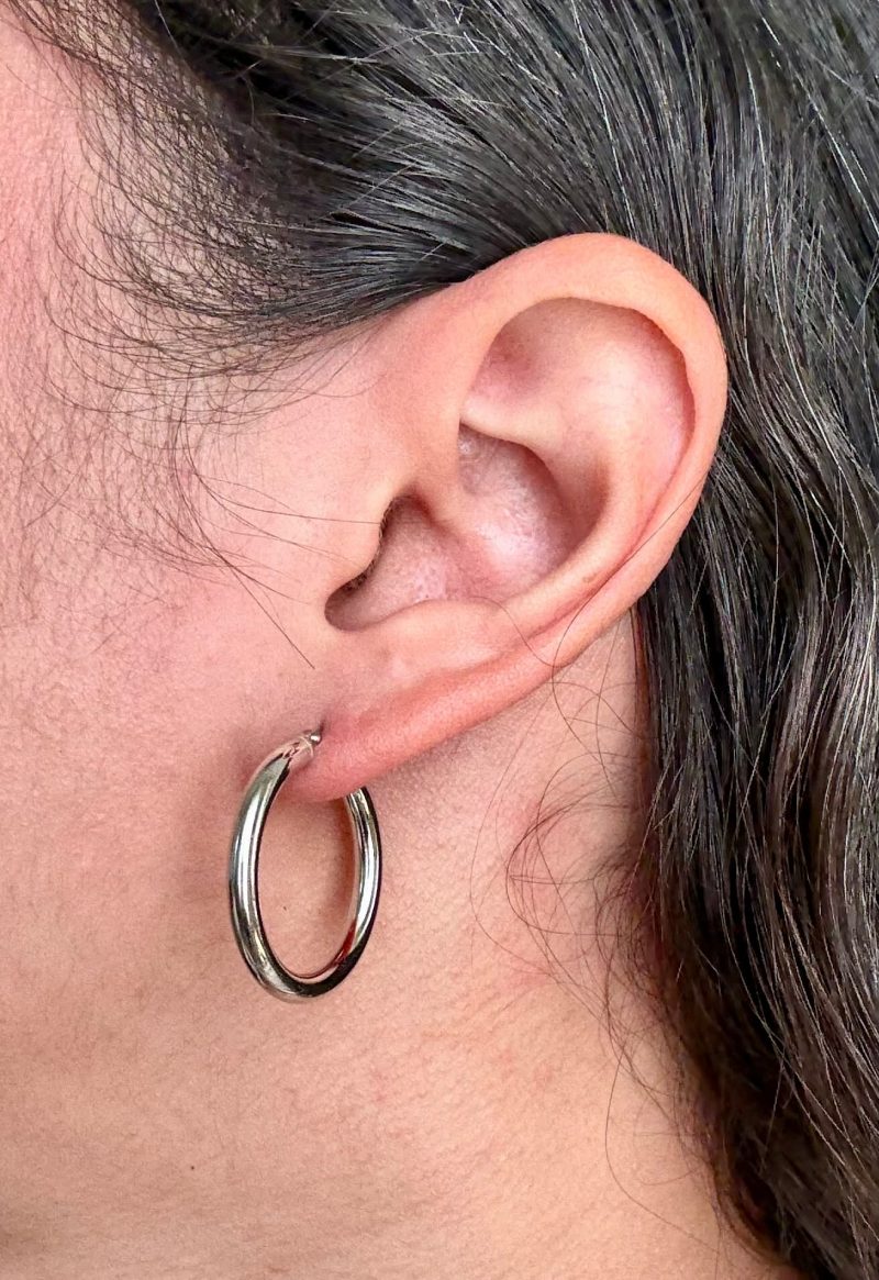 Boucles d’oreilles en argent, diamètre 20, ronde lisse 3 mm. Design épuré et moderne, parfait pour un style chic et décontracté au quotidien.