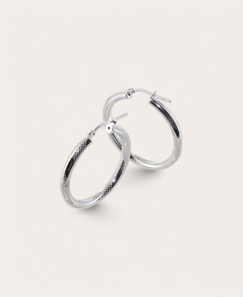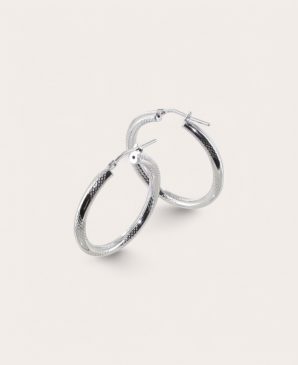 JULIA Créole Argent Rhodié, Diamètre 25 striées alternées 3mm Ronde