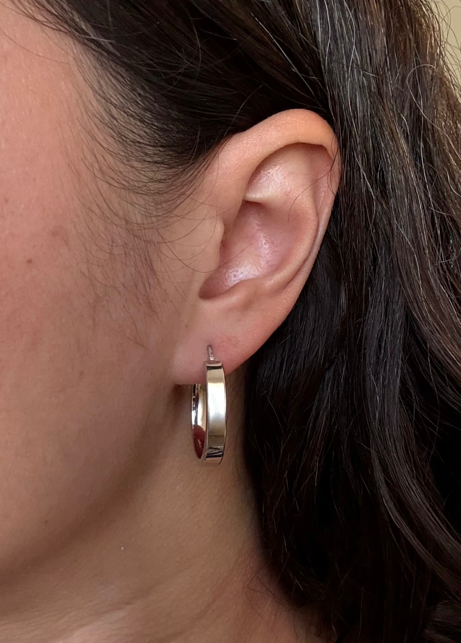 LEONIE Créole Argent, Ronde tube rectangle 4×2 mm