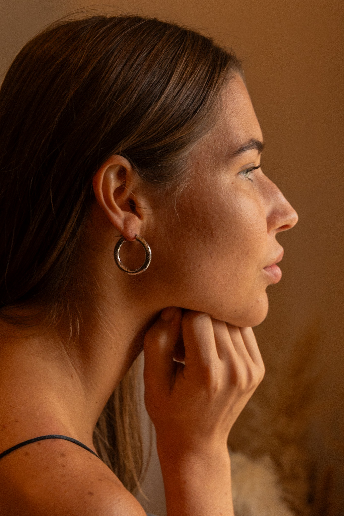 Un mélange parfait de texture et d’élégance : ces créoles en argent présentent une finition piquetée unique qui leur confère une allure audacieuse et raffinée. Leur diamètre de 20 mm et leur épaisseur de 4 mm apportent une belle présence tout en restant sobres et sophistiquées. Le jeu de lumière créé par la texture piquetée rend ces créoles parfaites pour celles qui cherchent à ajouter une touche moderne et pleine de caractère à leur collection. Idéales pour le quotidien ou une occasion spéciale, ces créoles en argent seront un choix incontournable pour sublimer votre look.