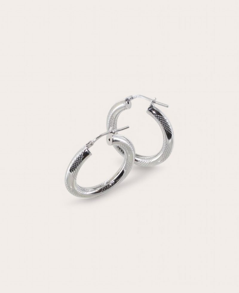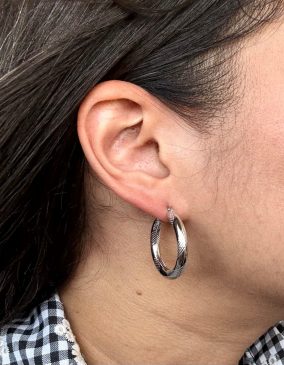 NINA Créole Argent Rhodié, Diamètre 20 striées alternées 4mm Ronde
