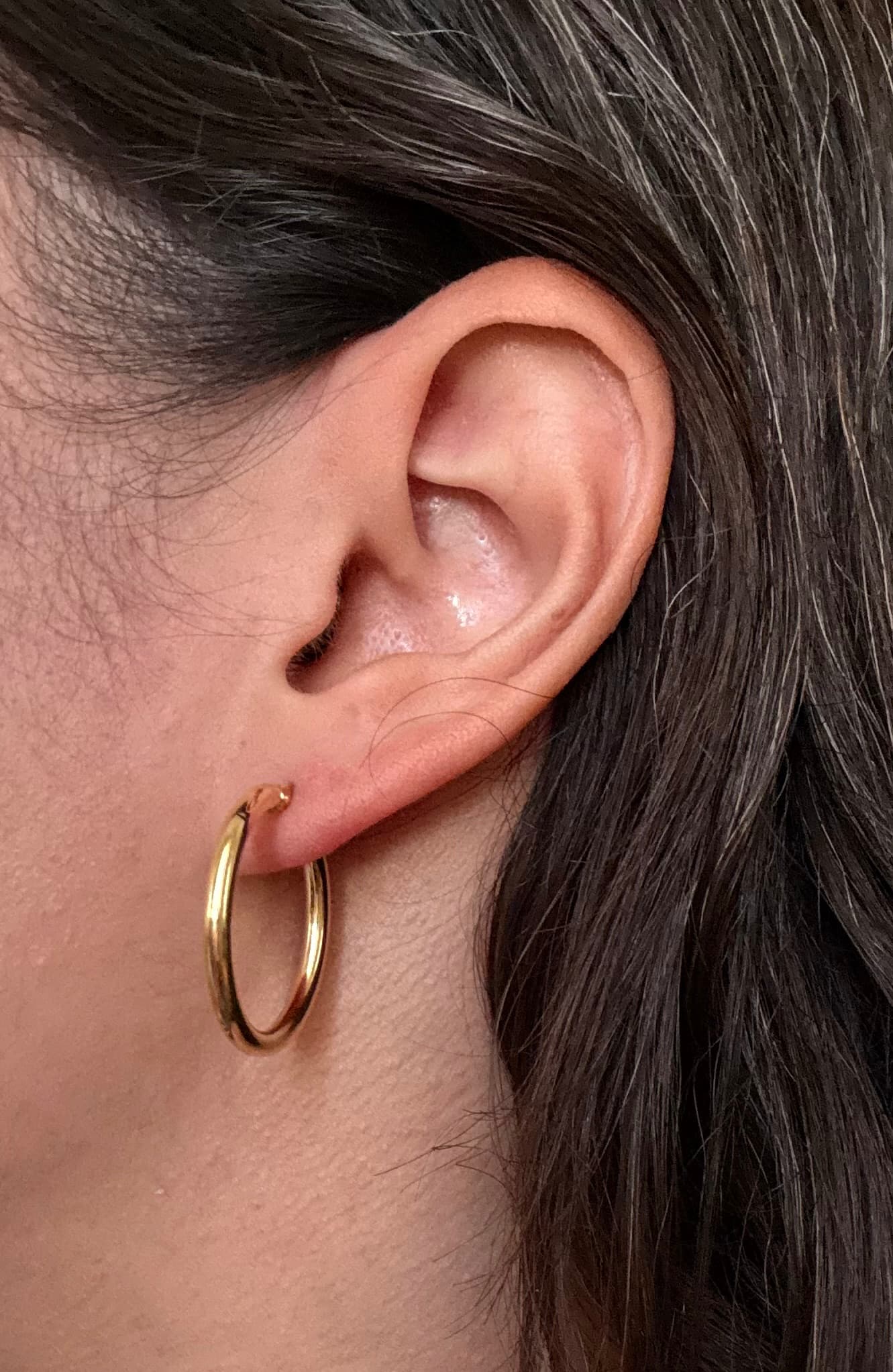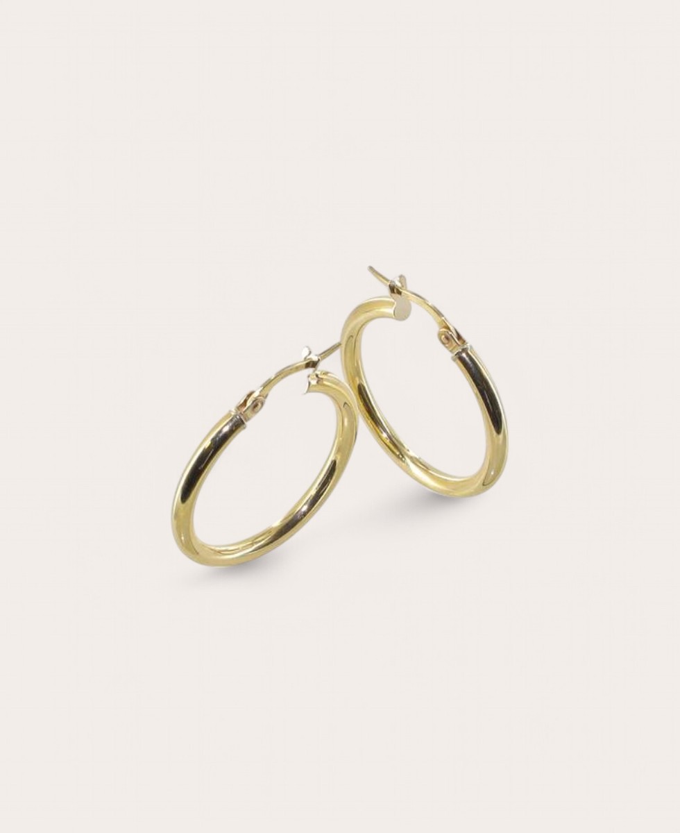 Boucles d’oreilles en or 750 jaune, diamèetre 20, ronde lisse 2,5 mm. Un design intemporel et lumineux pour un style à la fois simple et sophistiqué.