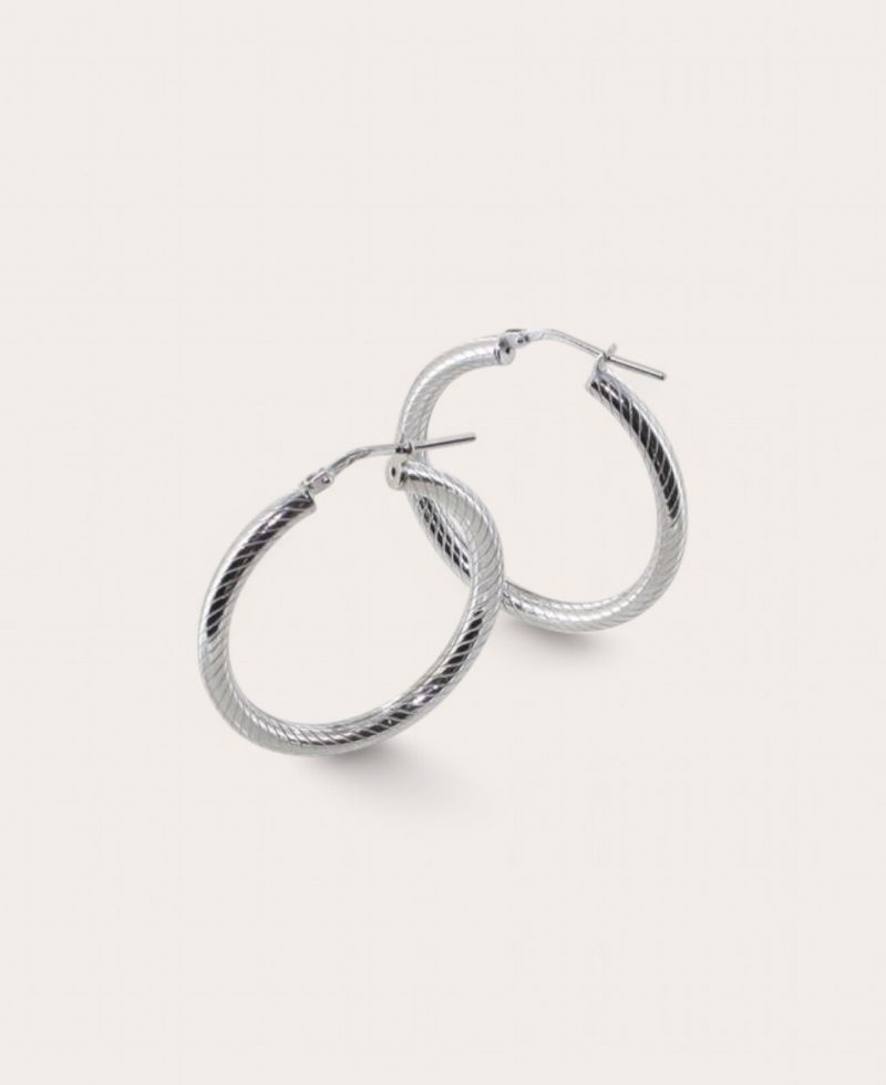ORIANE Créoles Argent Rhodié, Diamètre 25 striées 3mm Ronde