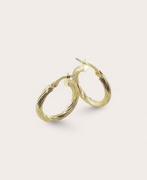 ROMY Créoles Or 375, Diamètre 15 torsadées fines 3mm Rondes