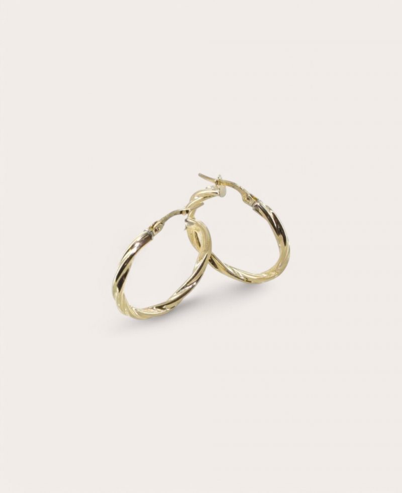 ROSE Créoles Or 375, Diamètre 20 torsadées 3mm Rondes