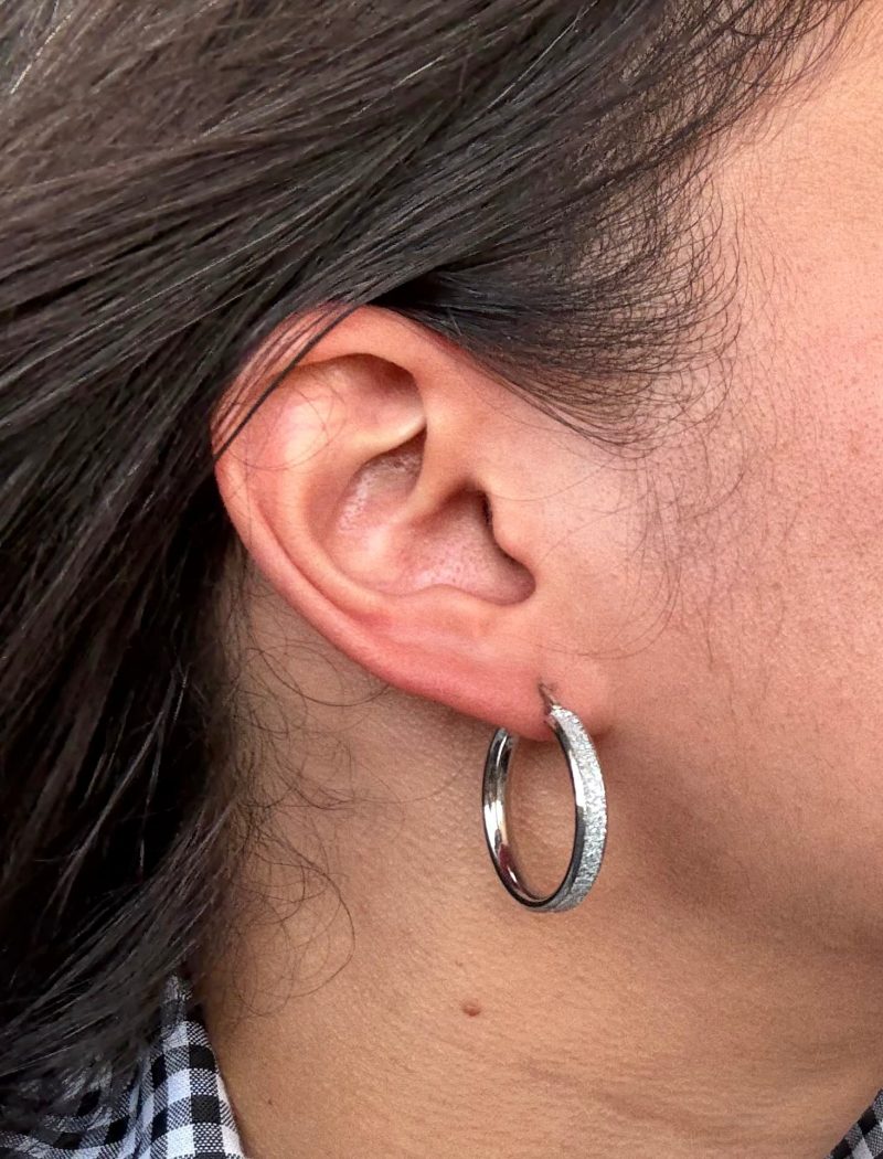 Boucles d’oreilles en argent, ronde 4×2, diamètre 20. Une pièce qui capte la lumière avec ses paillettes scintillantes, pour un style ultra-glamour et plein de panache. Parfaites pour celles qui veulent un look à la fois structuré et fluide, elles apportent une touche artistique à votre style. Un bijou qui ose la singularité et capte la lumière avec élégance !