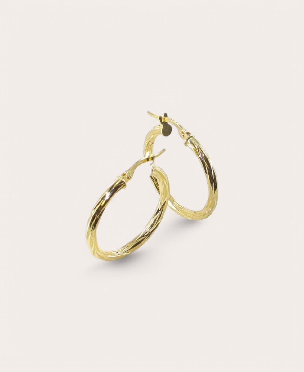 Boucles d’oreilles en or 750 jaune, ronde 3 mm, diamètre 20 avec une finition ananas délicieuse. Une pièce qui explose de lumière comme un lever de soleil, évoquant la richesse des motifs. Parfaites pour un style audacieux et doux, elles apportent une touche de fraicheur à votre look.