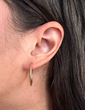Boucles d’oreilles en or 750 jaune, diamètre 25 mm, flexible ronde fil 1,6 mm. Une pièce qui allie volume et légèreté, avec une fluidité qui épouse votre oreille en toute élégance. Parfaites pour un style à la fois affirmé et raffiné, elles apportent une touche de modernité à votre look. Un bijou qui ose la simplicité avec panache !