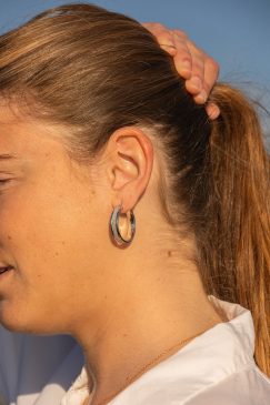 Boucles d’oreilles en argent, ovale tube 4 mm, grand modèle à paillettes. Une pièce qui danse avec la lumière, captant chaque rayon pour un éclat hypnotique. Parfaites pour un look à la fois discret et étincelant, elles ajoutent une touche de féérie à votre style. Un bijou qui transforme le quotidien en moment magique.